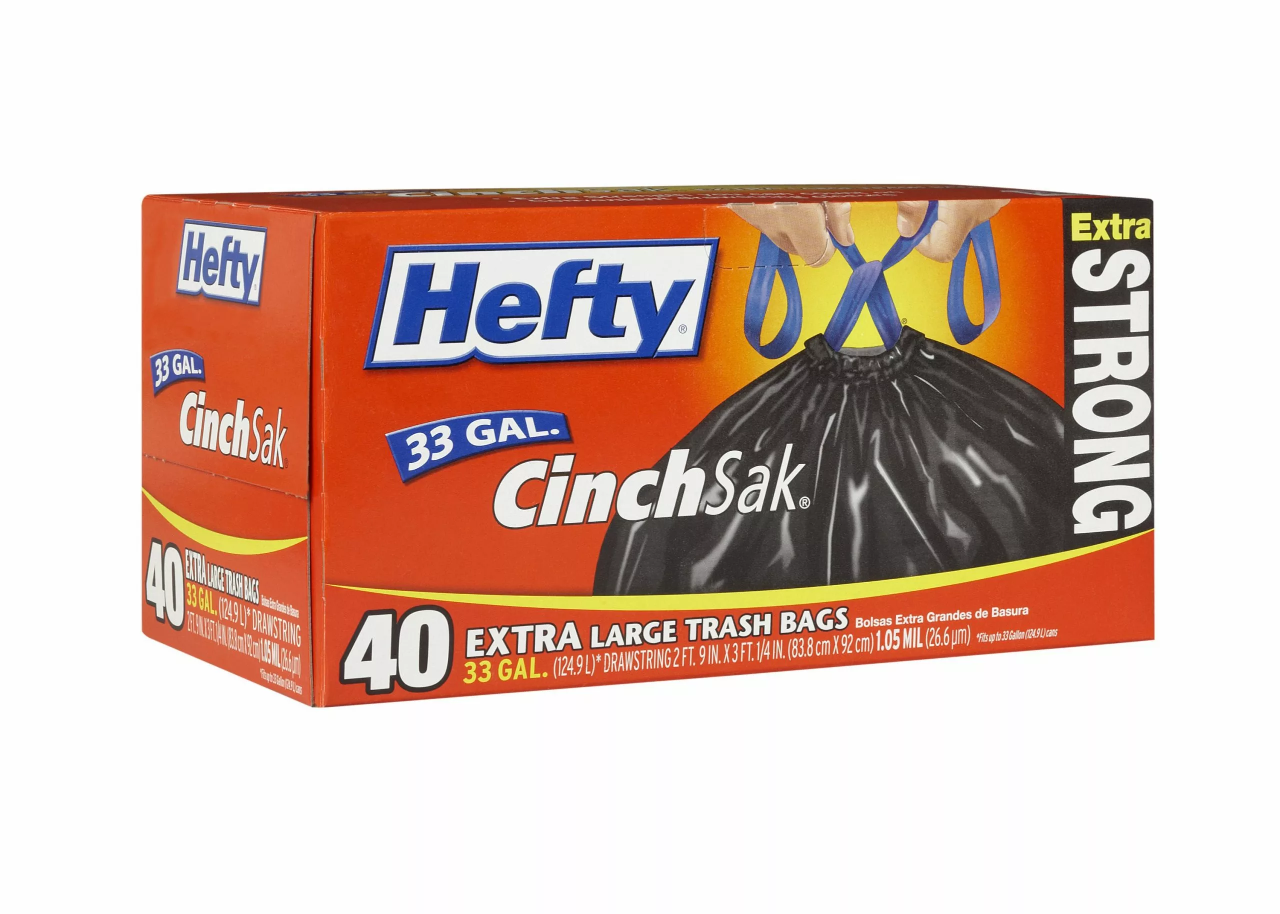 You’ll find many uses for these versatile, heavy duty trash bags. Try hefty strong multipurpose trash bags to tackle post-party clean-up, store seasonal items, collect donations, or to clean up your basement, garage and yard. The tough, versatile hefty strong trash can liners are also perfect for a variety of uses. The extra 3 In. of width on the hefty strong trash can liners make it ideal for lining large trash containers. When you have heavy duty clean up to tackle, these 33 Gallon, 1.05 mil thick large trash can liners are up to the challenge.