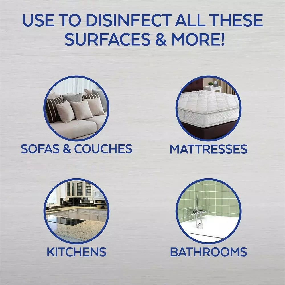 - Kills 99.9% of bacteria on soft surfaces