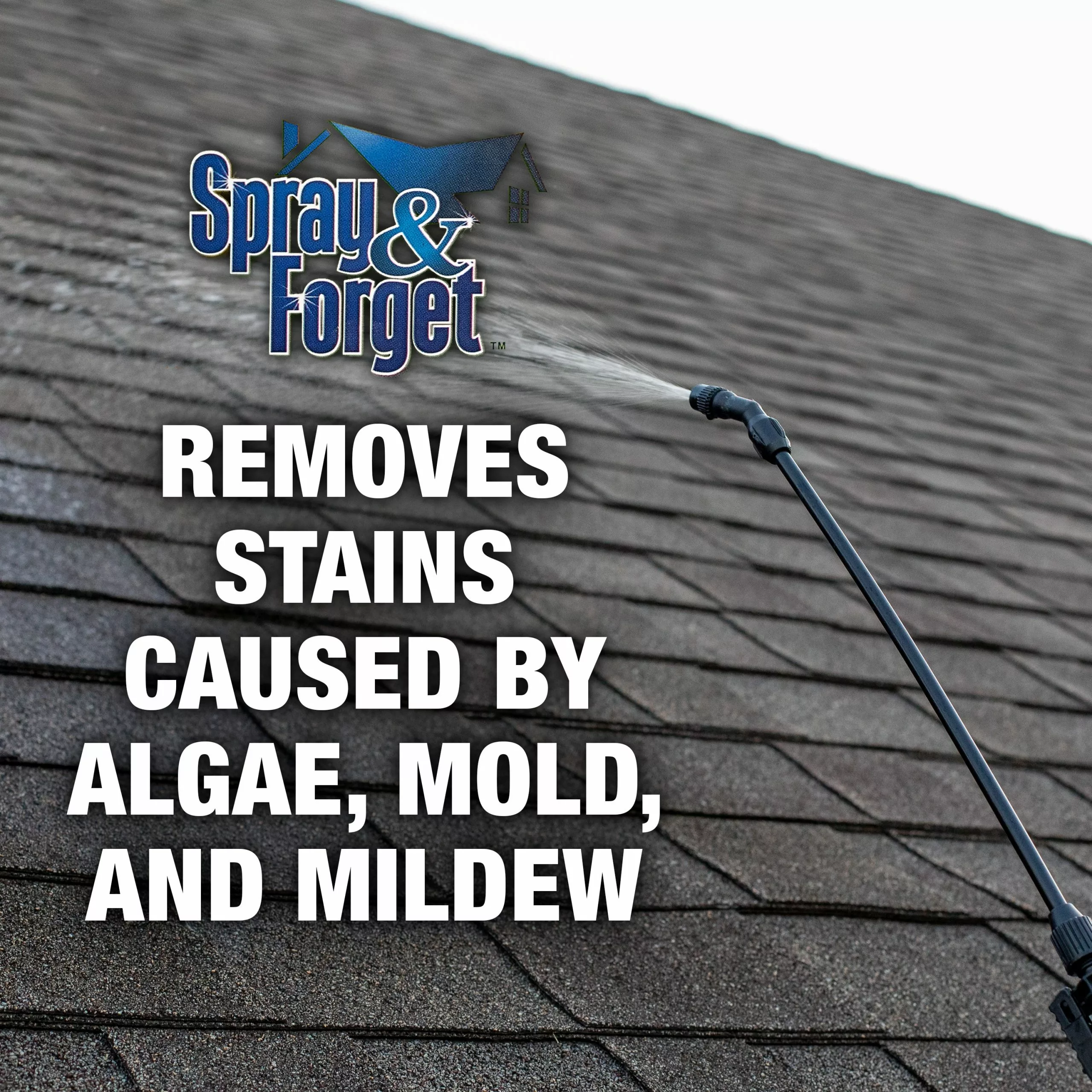 - Spray & Forget revolutionary roof cleaner concentrate removes stains caused by algae, mold and mildew